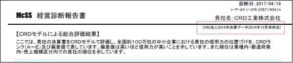 上図のレポートでは、「2016年12月末までに蓄積したCRD法人決算データ(2014年決算データ)」を基にした搭載データを使用していることを示しています。