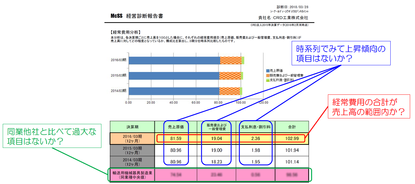 これと診断企業の構成比とを比較し、各費用項目に削減余地がないかを点検。