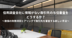 - 信用調査会社に情報がない取引先の与信審査をどうするか?~数個の財務項目ヒアリングで取引先を審査する新しい手法~近年、信用調査会社に情報がない企業が年々増えています。特に以下のようなケースでは、審査が止まってしま… 続きを読む: 信用調査会社に情報がない取引先の与信審査をどうするか?~数個の財務項目ヒアリングで取引先を審査する新しい手法~